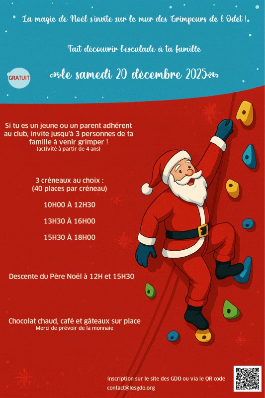 3 créneaux de 2H DE GRIMPE + VISITE DU PÈRE NOEL (40 places par créneaux)